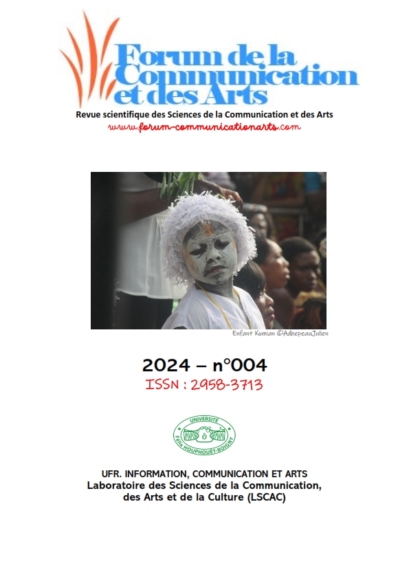 La Revue Forum de la Communication et des Arts (FCA) du Laboratoire des Sciences de la Communication, des Arts et de la Culture (LSCAC) de l'Université Félix Houphouet-Boigny (UFHB) informe la communauté scientifique du lancement de son numéro 003 (Novembre - Décembre 2024). Cette publication est ouverte aux propositions scientifiques inscrites essentiellement dans les sciences de la communication et les arts. Elle accepte également les articles scientifiques abordant les thématiques convoquées dans les sciences sociales et les sciences humaines.